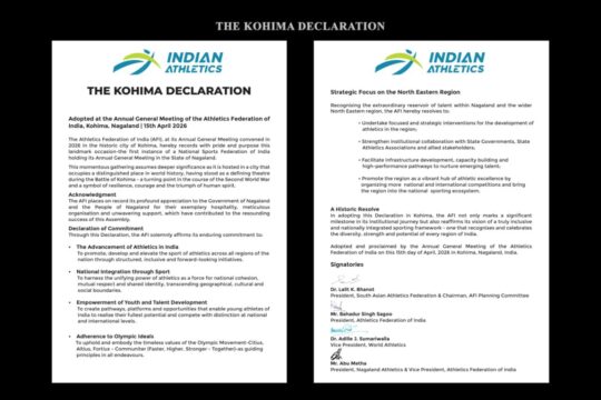 The Kohima Declaration was formally adopted and signed at the Athletics Federation of India Annual General Meeting 2026, marking a historic step forward for Indian athletics—igniting renewed energy, fostering unity, empowering talent, and paving the way for a dynamic, inclusive, and high-performing future for the sport nationwide.